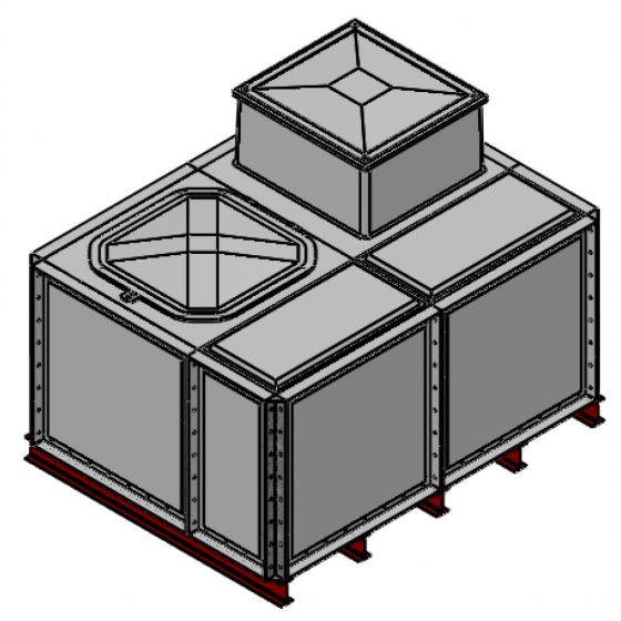 A GRP sectional tank offering an internally flanged base and externally flanged sides. Bolt-together panels used in modular construction allow for on-site assembly. WRAS-approved and insulated for use with category 5 water.
