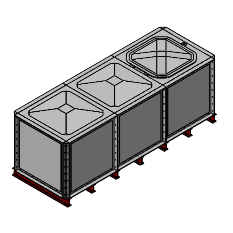 A GRP sectional tank offering an internally flanged base and externally flanged sides. Bolt-together panels used in modular construction allow for on-site assembly. WRAS-approved and insulated for use with potable water.