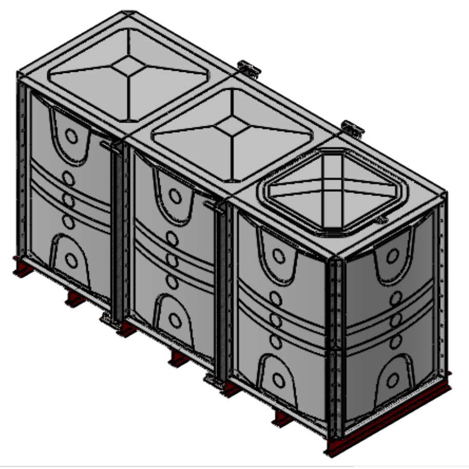 A GRP sectional tank offering an internally flanged base and externally flanged sides. Bolt-together panels used in modular construction allow for on-site assembly. WRAS-approved and insulated for use with potable water.
