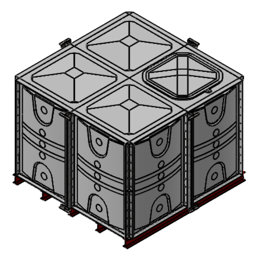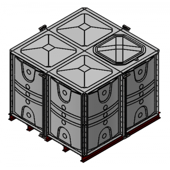 A GRP sectional tank offering an internally flanged base and externally flanged sides. Bolt-together panels used in modular construction allow for on-site assembly. WRAS-approved and insulated for use with potable water.