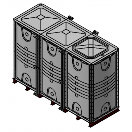 A GRP sectional tank offering an internally flanged base and externally flanged sides. Bolt-together panels used in modular construction allow for on-site assembly. WRAS-approved and insulated for use with potable water.