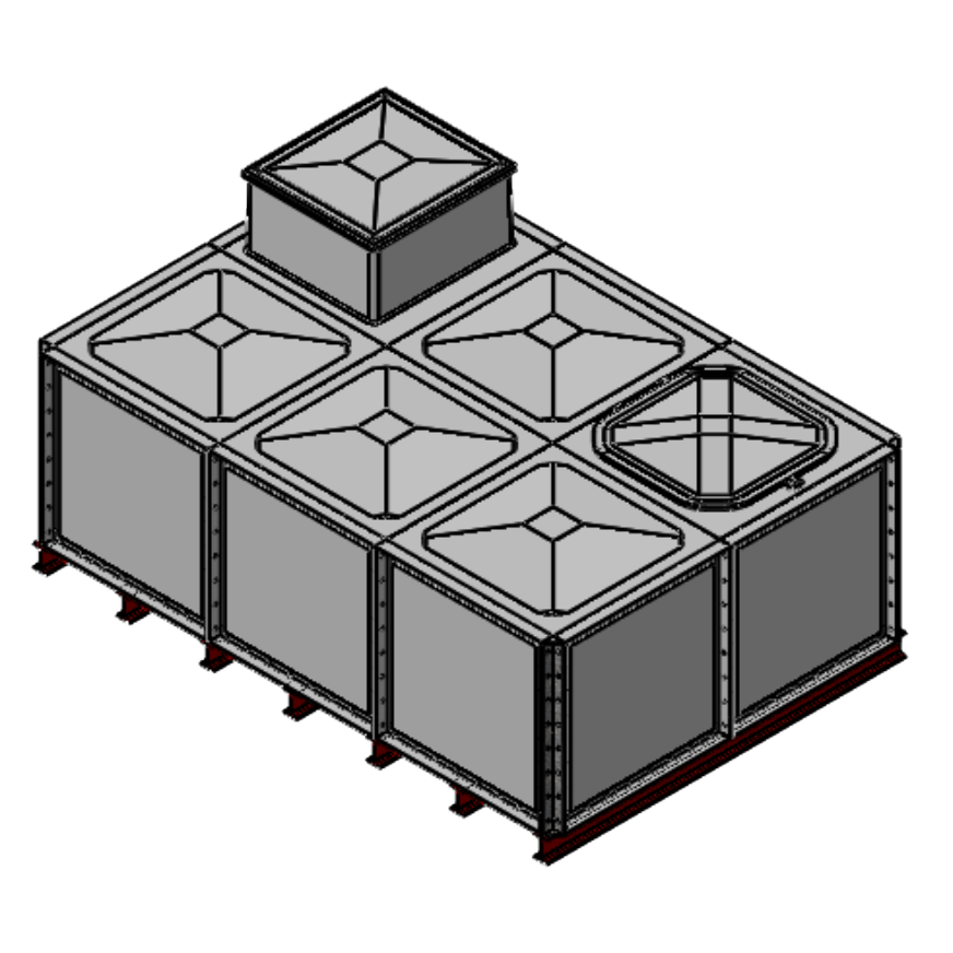 A GRP sectional tank offering an internally flanged base and externally flanged sides. Bolt-together panels used in modular construction allow for on-site assembly. WRAS-approved and insulated for use with category 5 water.