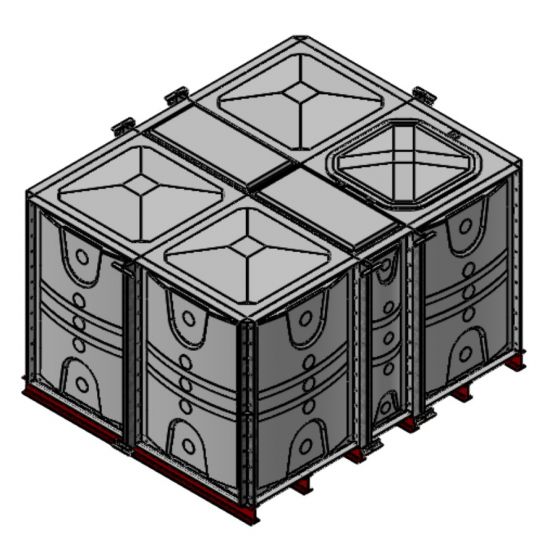 A GRP sectional tank offering an internally flanged base and externally flanged sides. Bolt-together panels used in modular construction allow for on-site assembly. WRAS-approved and insulated for use with potable water.