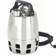 Single free flow (vortex) impeller submersible pumps in chrome-nickel stainless steel, with vertical delivery port.