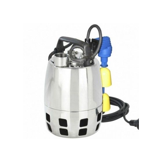 Single free flow (vortex) impeller submersible pumps in chrome-nickel stainless steel, with vertical delivery port.