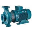 Close-coupled centrifugal pumps; electric motor with extended shaft directly connected to the pump up to 15 kW, new bracket construction for standard motors (Stub-shaft construction) from 18,5 to 75 kW with integrated thrust bearing.