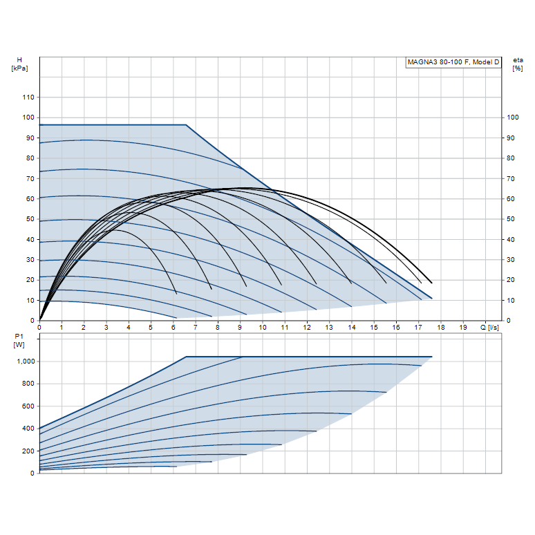 The MAGNA3 incorporates a 4-pole synchronous, permanent-magnet motor (PM motor). This motor type is characterised by higher efficiency than a conventional asynchronous squirrel-cage motor. The pump speed is controlled by an integrated frequency converter.