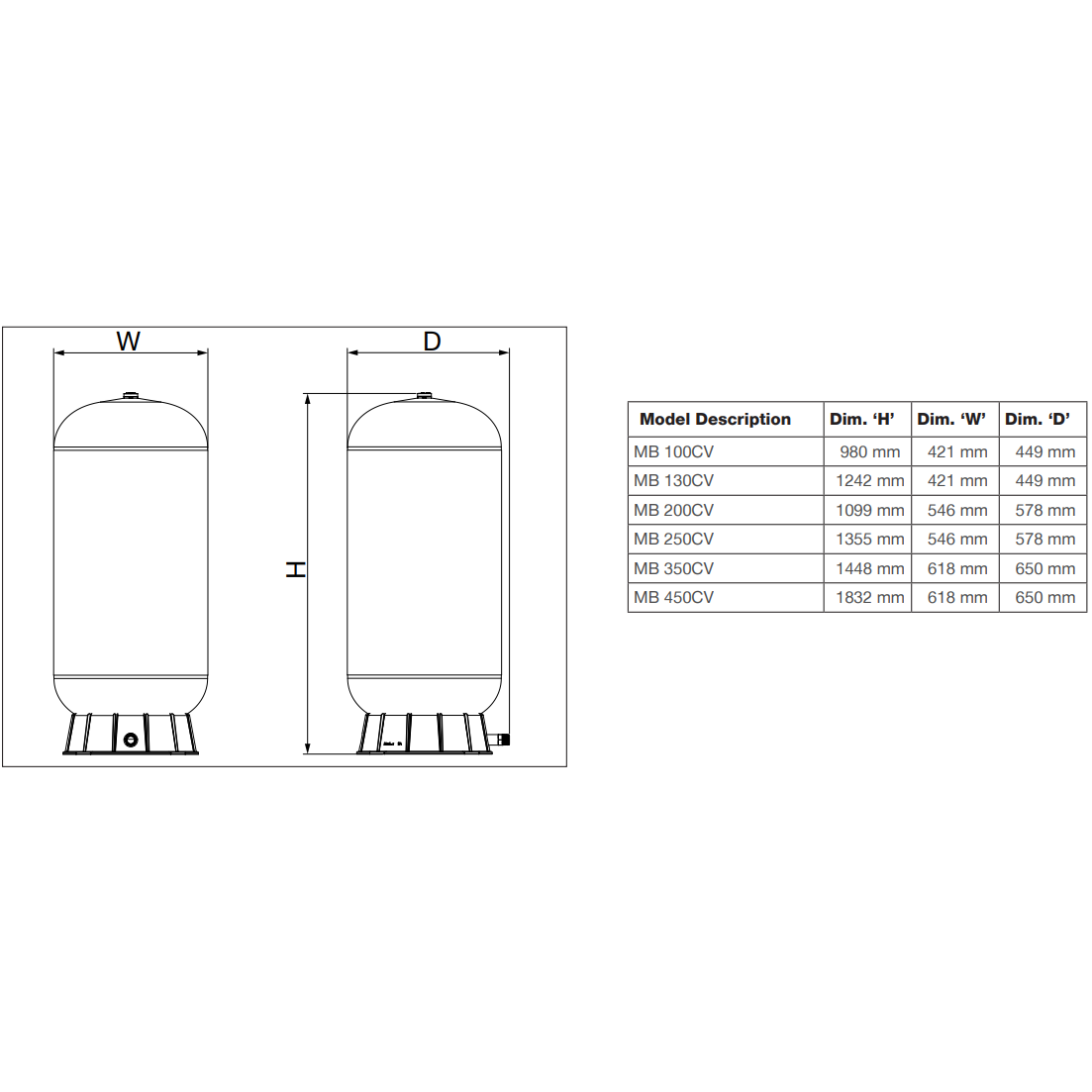 The MB 100CV has a nominal vessel size of 100 litres, providing approximately 55 litres of cold water storage capacity. Installation is significantly simplified thanks to the included compact MAINSBOOST Monobloc 22mm Upstream Kit (USK).